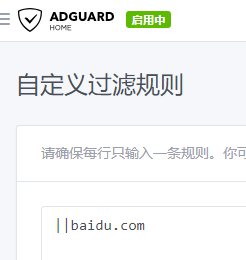 如果需要过滤的域名较少,可以直接使用自定义过滤规则来过滤,自定义过滤规则优先级最高。建议使用第一种,可以备份规则,以免丢失